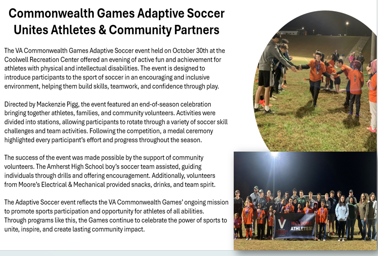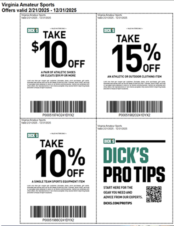 Please keep in mind that Virginia Amateur Sports is a 501(c)(3) organization. Please consider donating to our organization to support our efforts in promoting the values of health and wellness through competitions, education, and training for all Virginians. Click here to donate now.